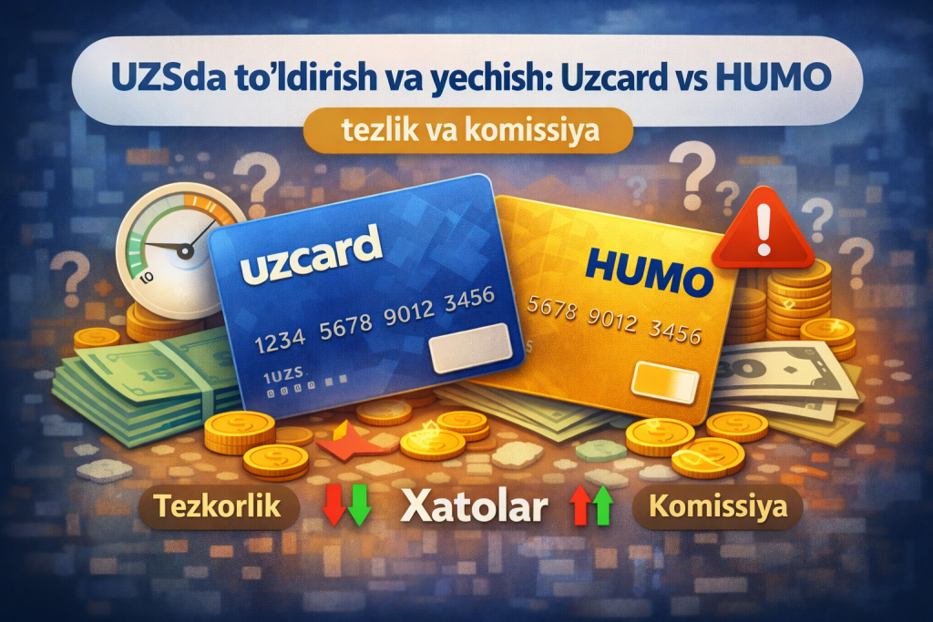 UZSda to‘ldirish va yechish: Uzcard vs HUMO (tezlik, komissiya va xatolar)